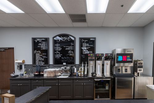 Church of the Servant has a coffee shop! It was created to be a place where our congregation and guests come to a relaxed environment in our community. We have a hot espresso and frozen drinks, coffee, tea, and soda. We also have many kid-friendly treats including Lunchables, Go-gurts, and juice boxes. We are located just inside the main entrance of the church across from the Centrum.